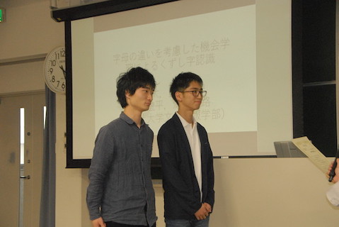 この度は、栄えある賞を賜ることができ、至極光栄に存じます。 発表者自身が学部3年生ということで、まだ、専門と言えるほどの研究テーマ・分野もありませんが、統計科学を学ぶ中で、その理論の実践として、今回、近年関心の高いくずし字認識のテーマを取り上げさせていただきました。 我々の研究では字母に着目することで、認識精度の向上を目指し、達成することができました。 発表では多くの方々に興味・関心を寄せて頂き、大変参考になるご意見をいただけたことをこの場をお借りして感謝申し上げたいと思います。 そして、引き続きこのテーマを発展させる研究に取り組みたいと考えています。最後に、このような発表の機会を与えてくださったCH研究会、そして指導して下さった先生方にも感謝申し上げます。ありがとうございます。
