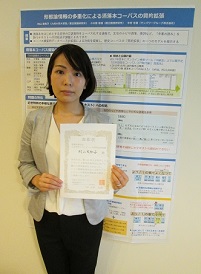 この度は大変素晴らしい賞を賜り,誠に光栄に存じます。 本研究は,江戸時代の文学作品における表記の多様性と,それをいかにしてコーパスに反映させるか,という課題を扱ったものです。これまでの通時コーパスの積み重ねがあってこそ,取り組むことができました。ご指導くださった小木曽智信教授,中村壮範氏をはじめ,お力添えくださった周囲の方々に心から感謝申し上げます。 私自身は,もともと国語学を専門としており,中世後期~近世にかけての文献を主な研究対象としてきました。コーパスを利用し始めたのは大学院に入ってしばらくしてからですが,国語研でコーパス構築に携わるようになり,それまで以上に資料そのものを意識するようになりました。今後も様々な観点から,コーパスを活用した日本語史研究を進めていけるよう努力してまいりたいと存じます。