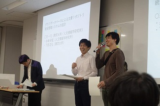 この度は、奨励賞をいただきまして、大変光栄です。今回の発表自体は、コミュニテ ィ構築についてということで、 発表の中に情報技術が出てくることはなく、CH研究会の発表と しては異色のものだ ったかもしれません。 それにも関わらず、審査の先生方や聴衆のみなさんは大変親身に発表を聴いてくださ り、 大学院生を中心に作り上げてきたこのTokyo Digital Historyというコミュニティを 今後どのように育てていくか、 厳しいご指摘から温かいアドバイスまで数多くいただくことができました。 改めてCH研究会の懐の深さを実感するとともに、このような研究会に育てられてきた ことをうれしく感じました。 コミュニティを代表してお礼申し上げます。 今後、ますますパワーアップして進んでいきたいと思いますので、これからもご指導 のほどよろしくお願いいたします。